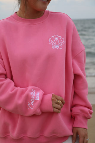 Crafted from a high-quality, soft, medium-weight cotton blend, this crew features a full back embroidery design, our signature shell icon on the front, and a subtle sleeve logo for just the right amount of detail.