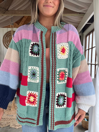 In the Groove Patchwork Poncho Top - CHARCOAL