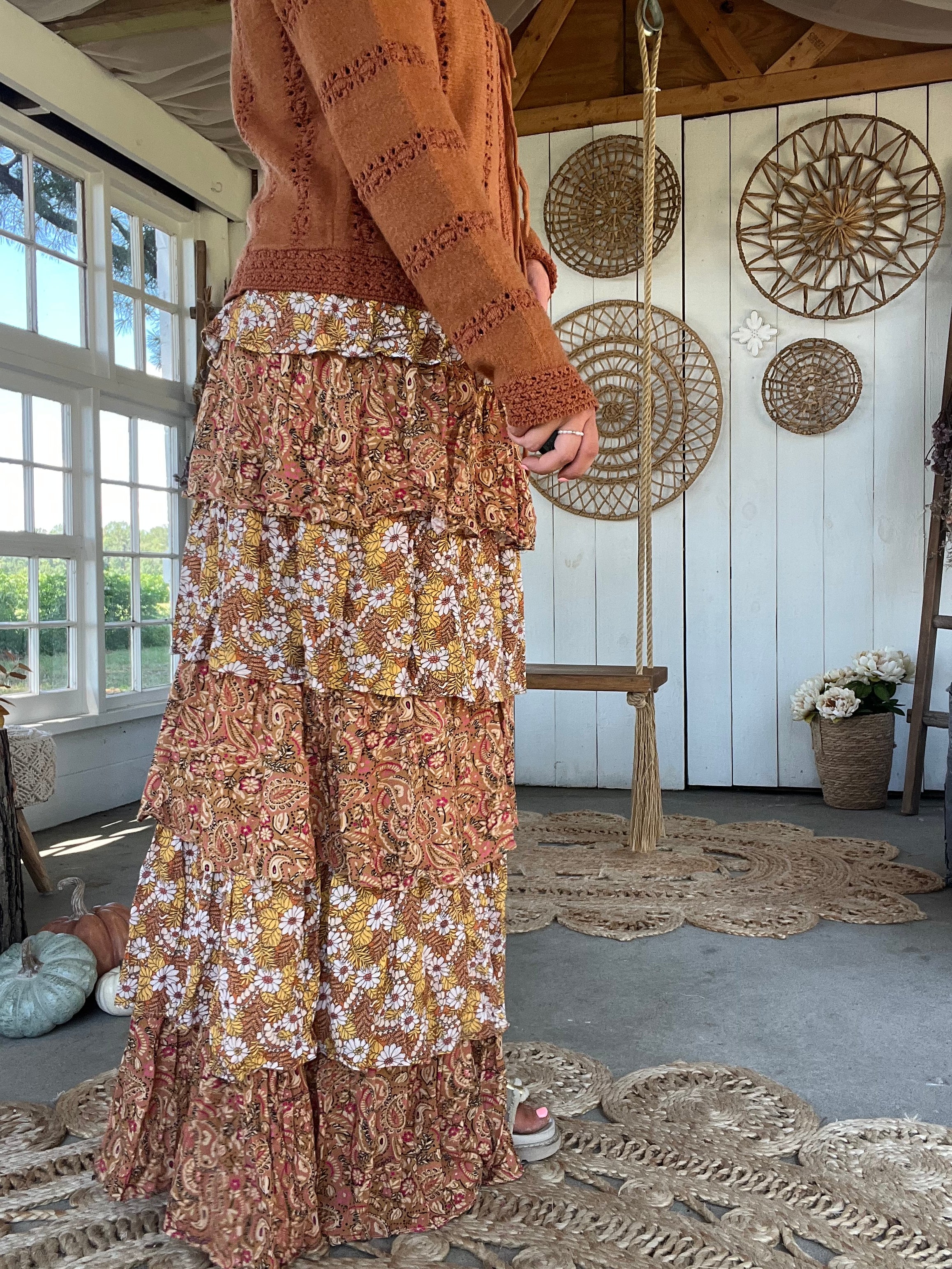 PULL-ON STYLE MAXI-LENGTH SOFT LIGHTWEIGHT PRINT FABRIC EALSTIC WAISTBAND