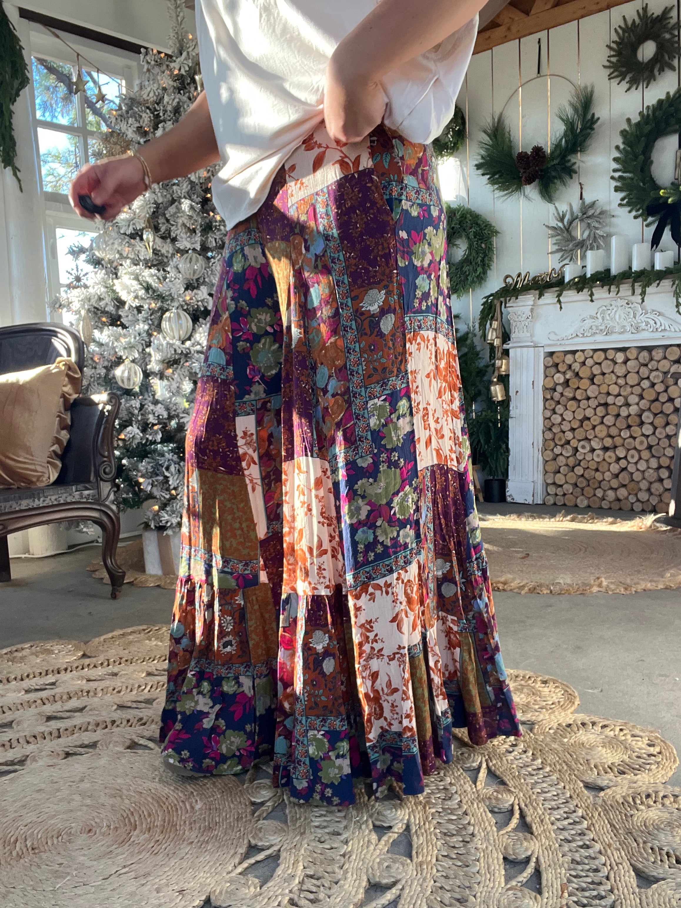 PATCHWORK PRINTED GAUZE PALAZZO PANTS