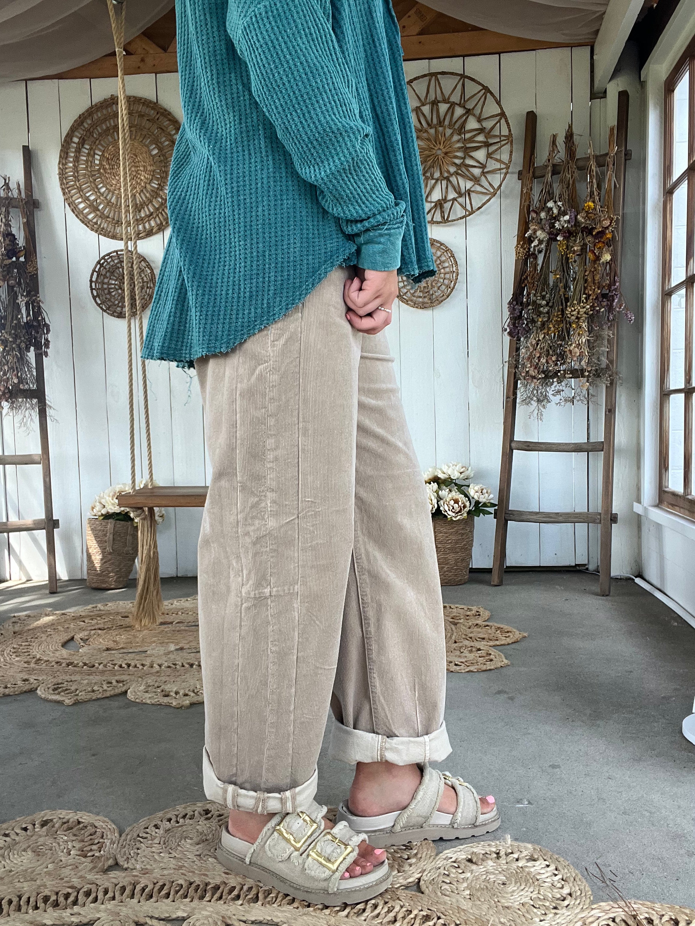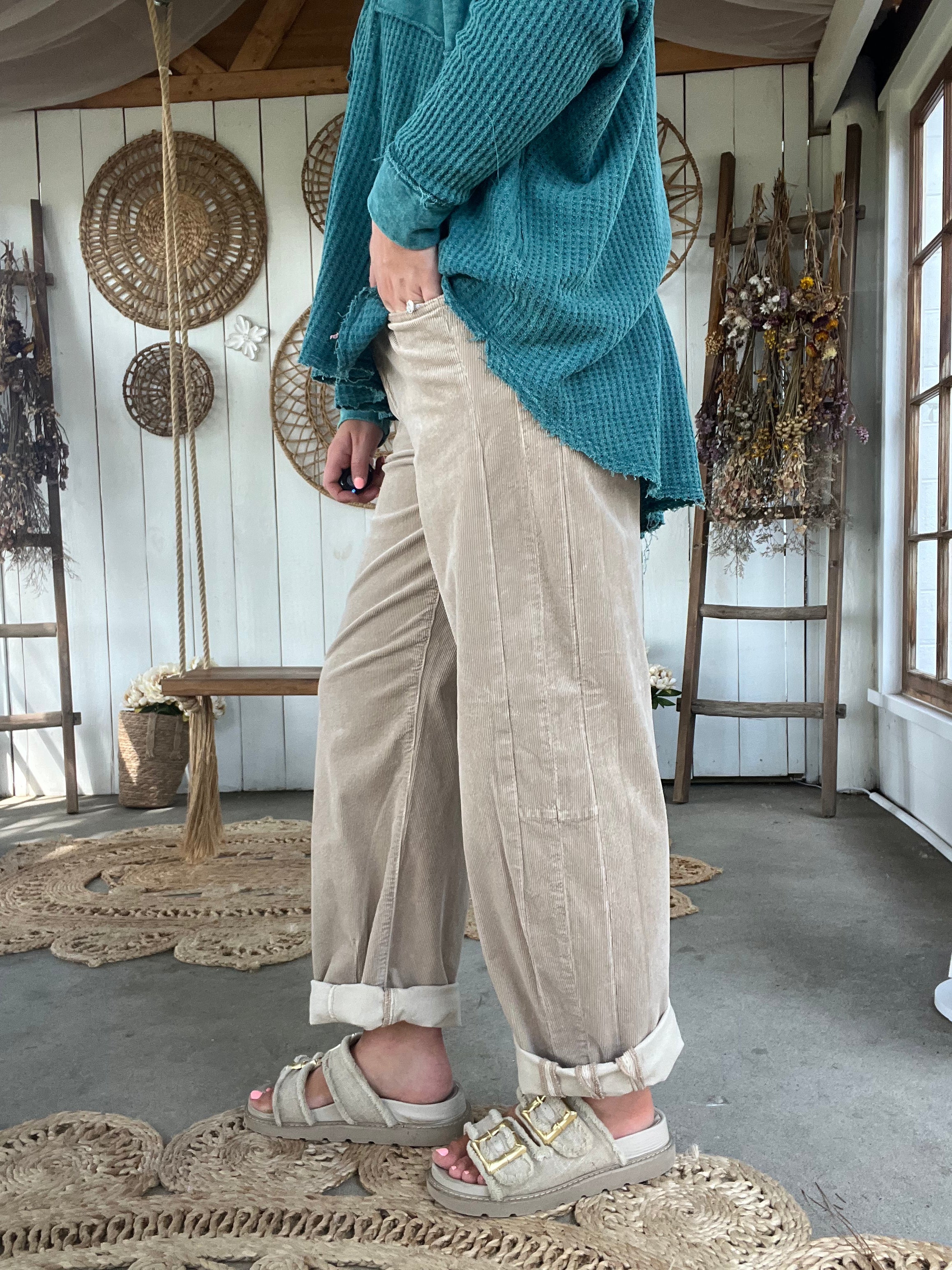 HIGH RISE CROP BARREL CORDUROY PANTS