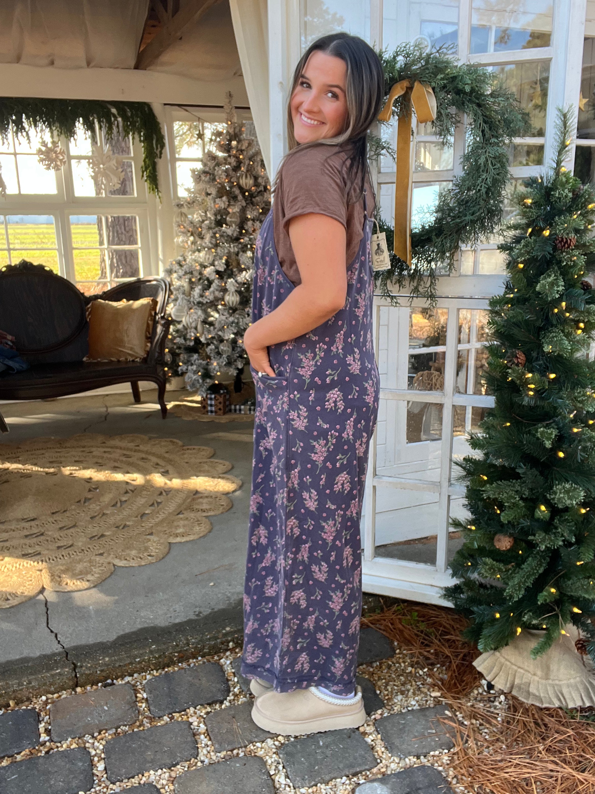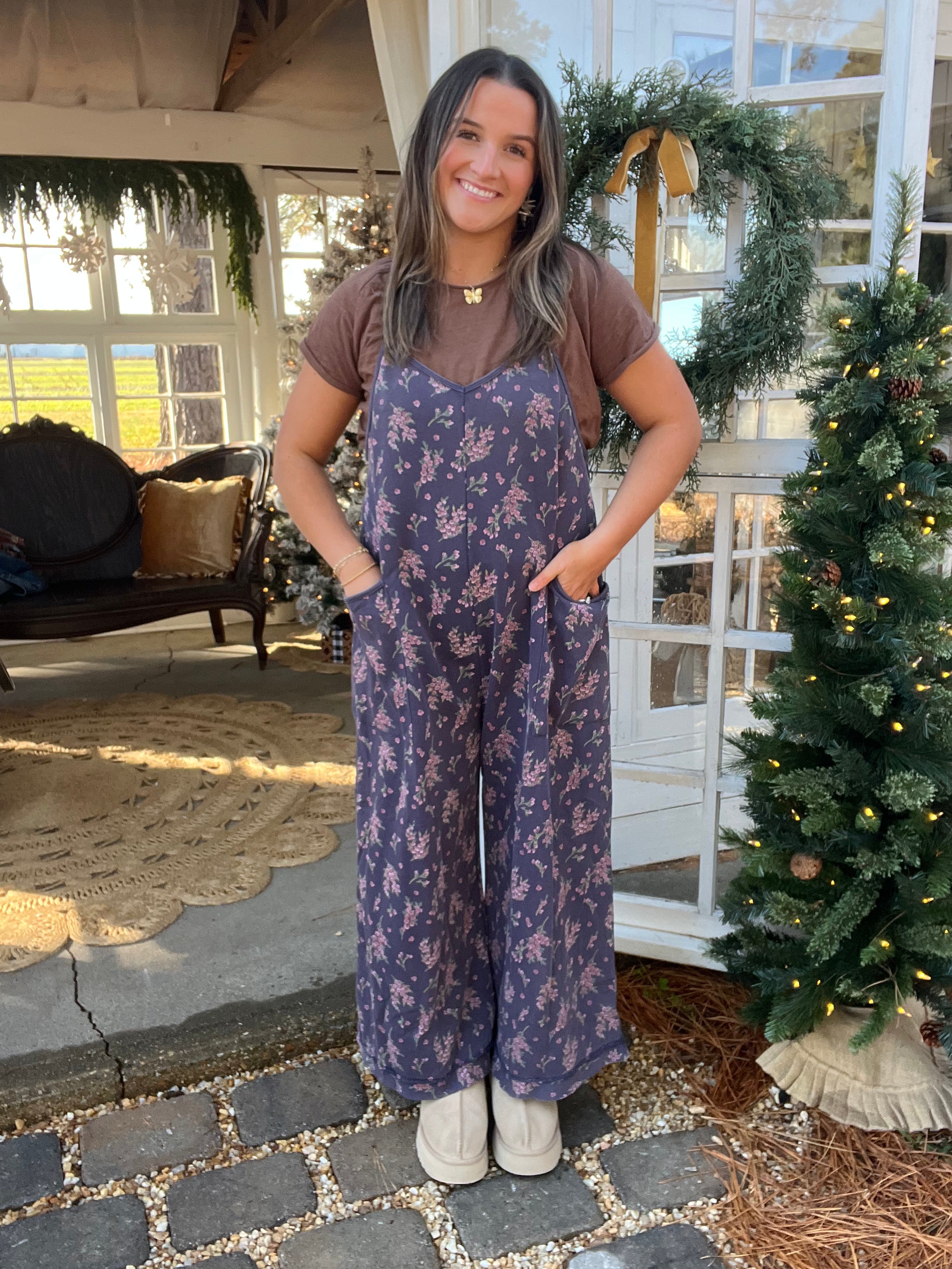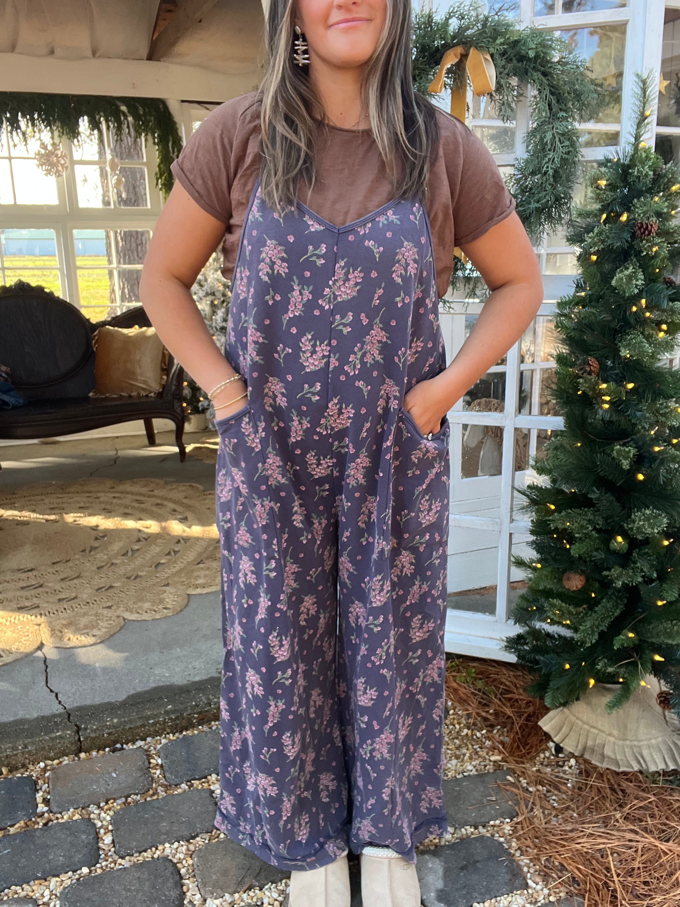 FLORAL PRINT WASHED TERRY JUMPSUIT