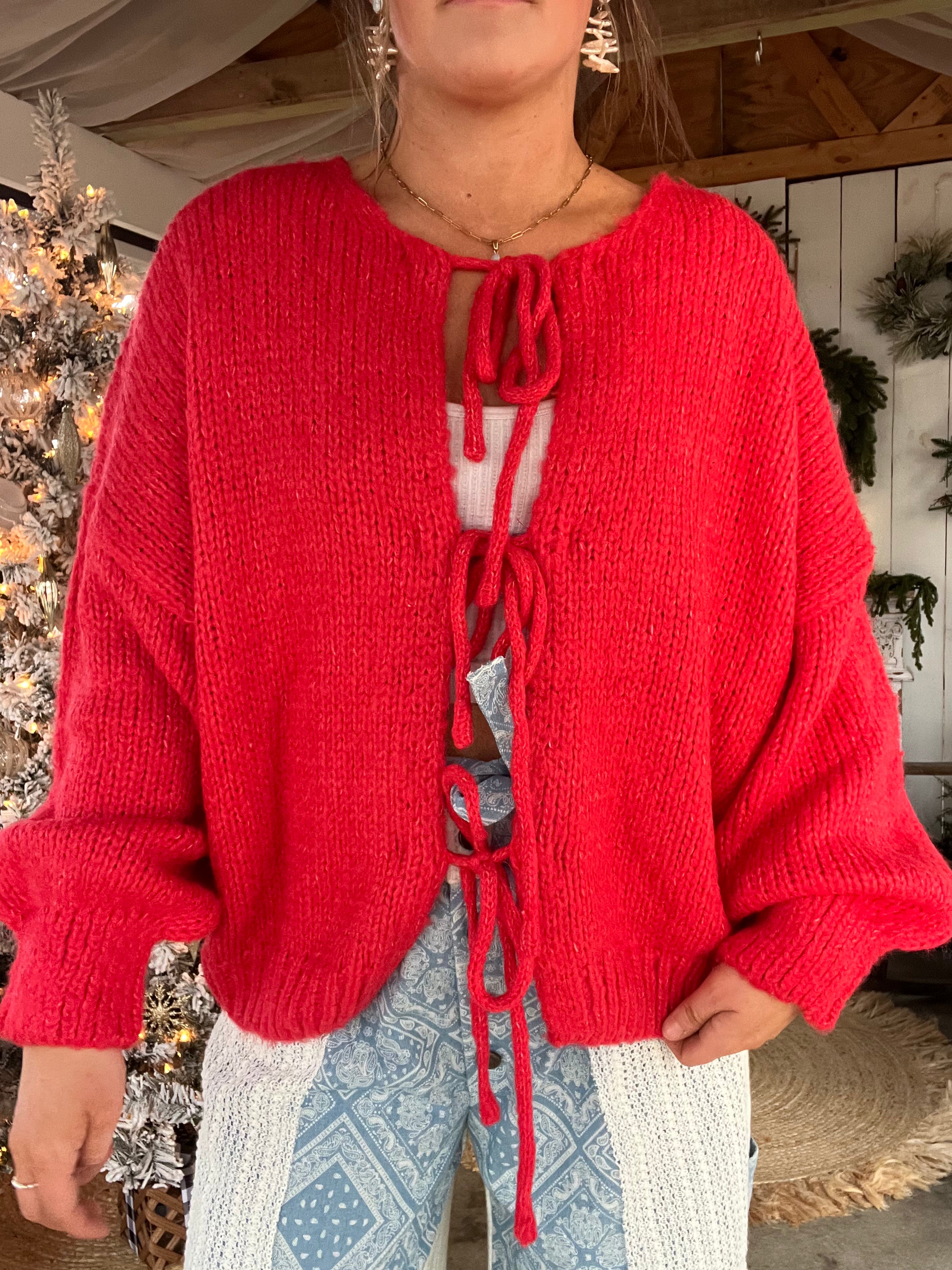 Knit Sweater Acrylic Polyester Wool Scoop Neck Tie Front Long Sleeve Cardigan Top