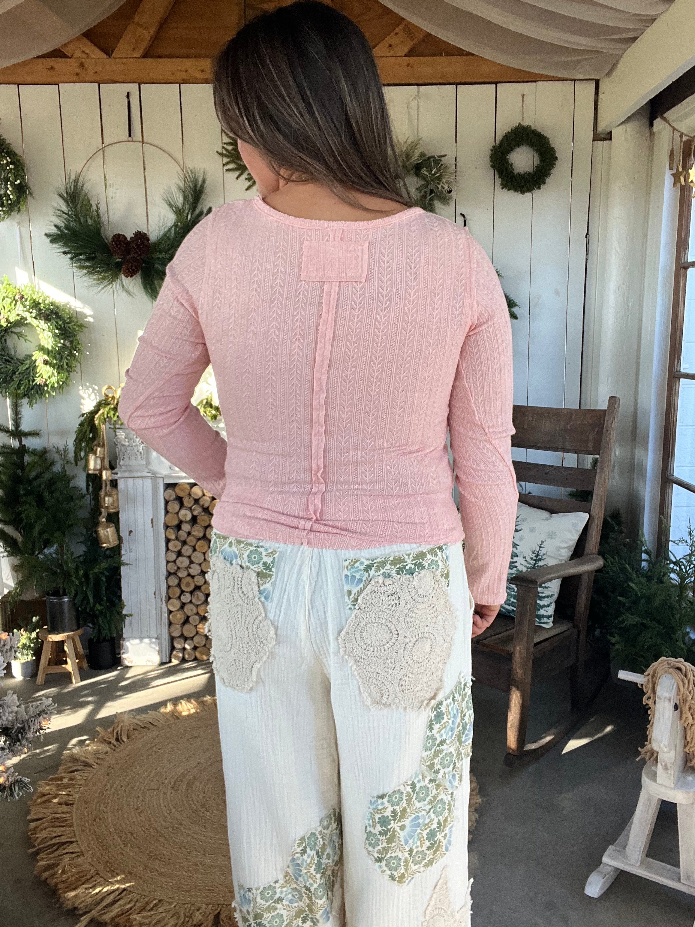 Designed in square neck, fitted top in cut and sew knit with placket detail pointed solid pattern.