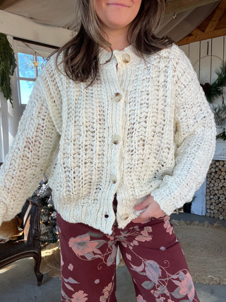 The Cabin Fever Cable Knit Cardigan - TAUPE