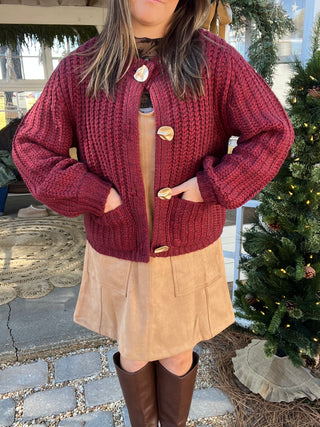 The Calli Chunky Cable Knit Half Zip Sweater - RED