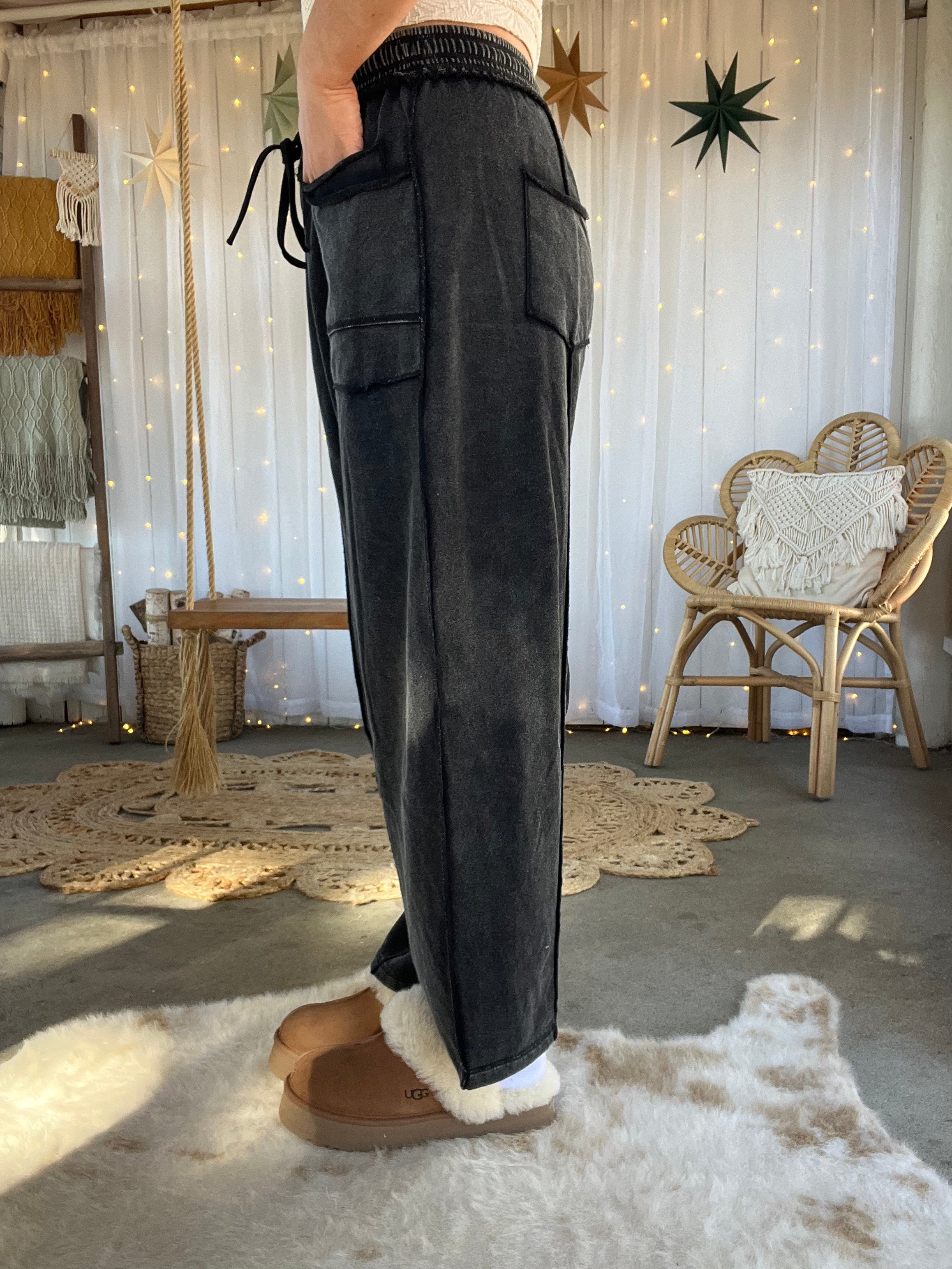 • MINERAL WASH BARREL FIT UTILITY KNIT PANTS