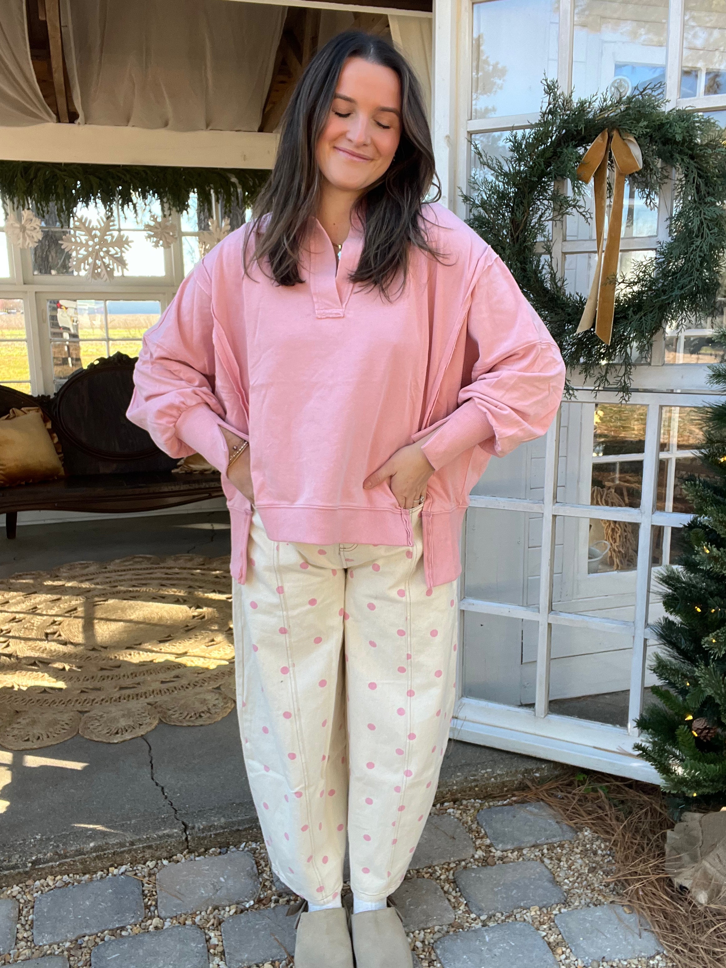 Mineral Washed Collar Placket Oversized Sweatshirt