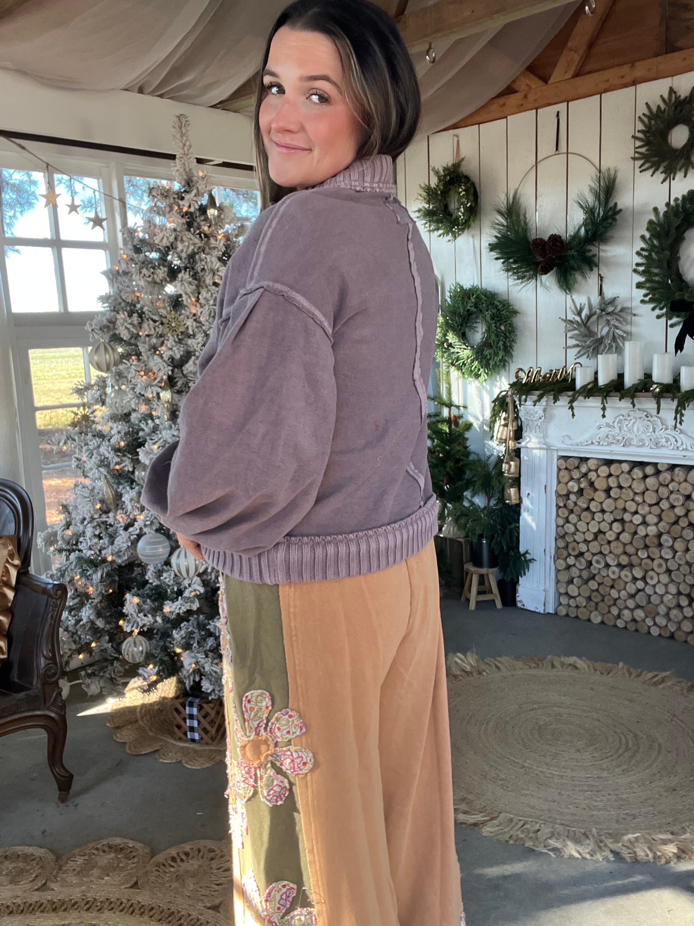 • WASHED VINTAGE RIBBED KNIT TRIM CARDIGAN JACKET