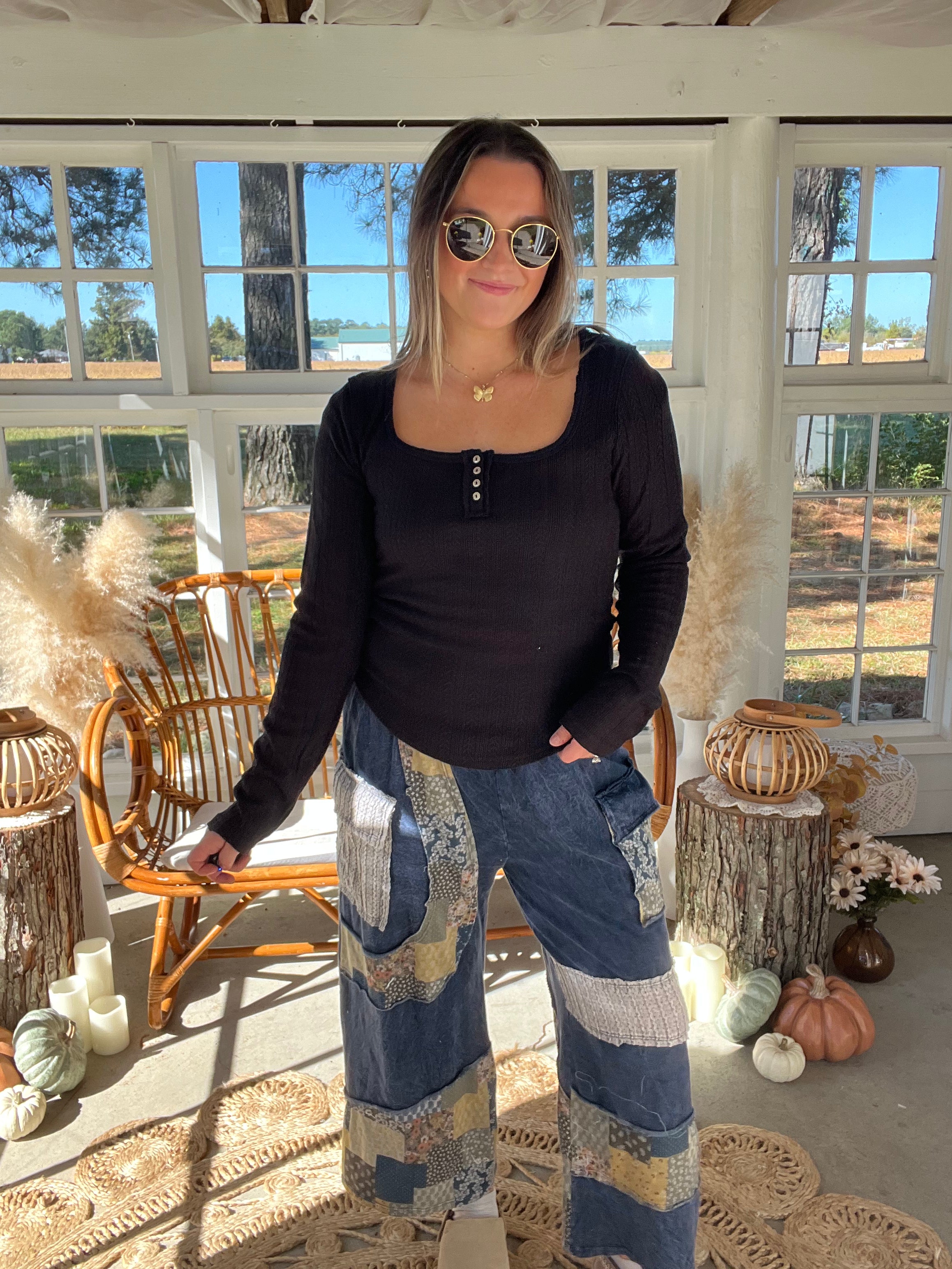 Designed in square neck, fitted top in cut and sew knit with placket detail pointed solid pattern.