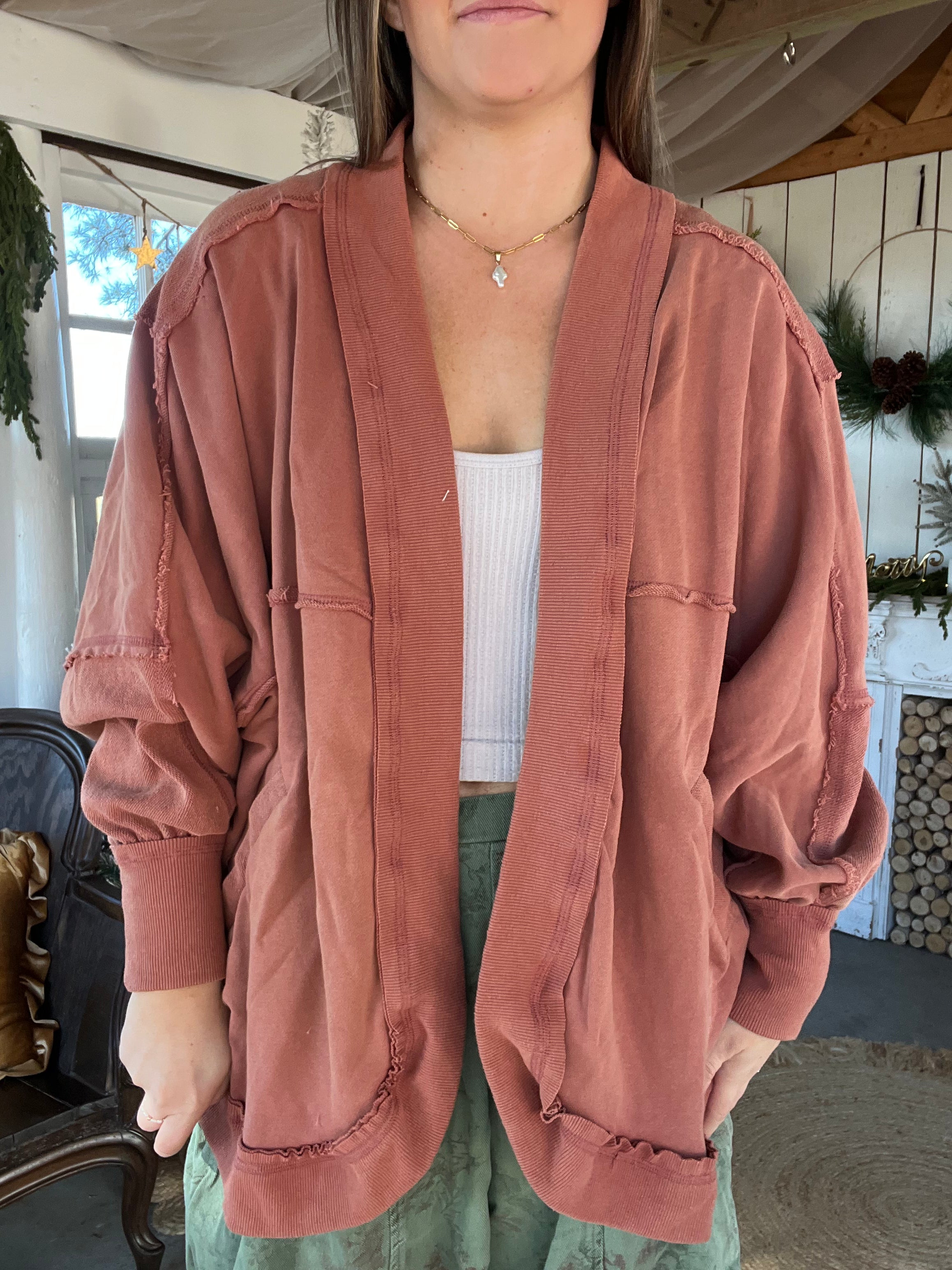 French Terry Cut Edge Detailed Bet Wing Fit Oversized Cardigan