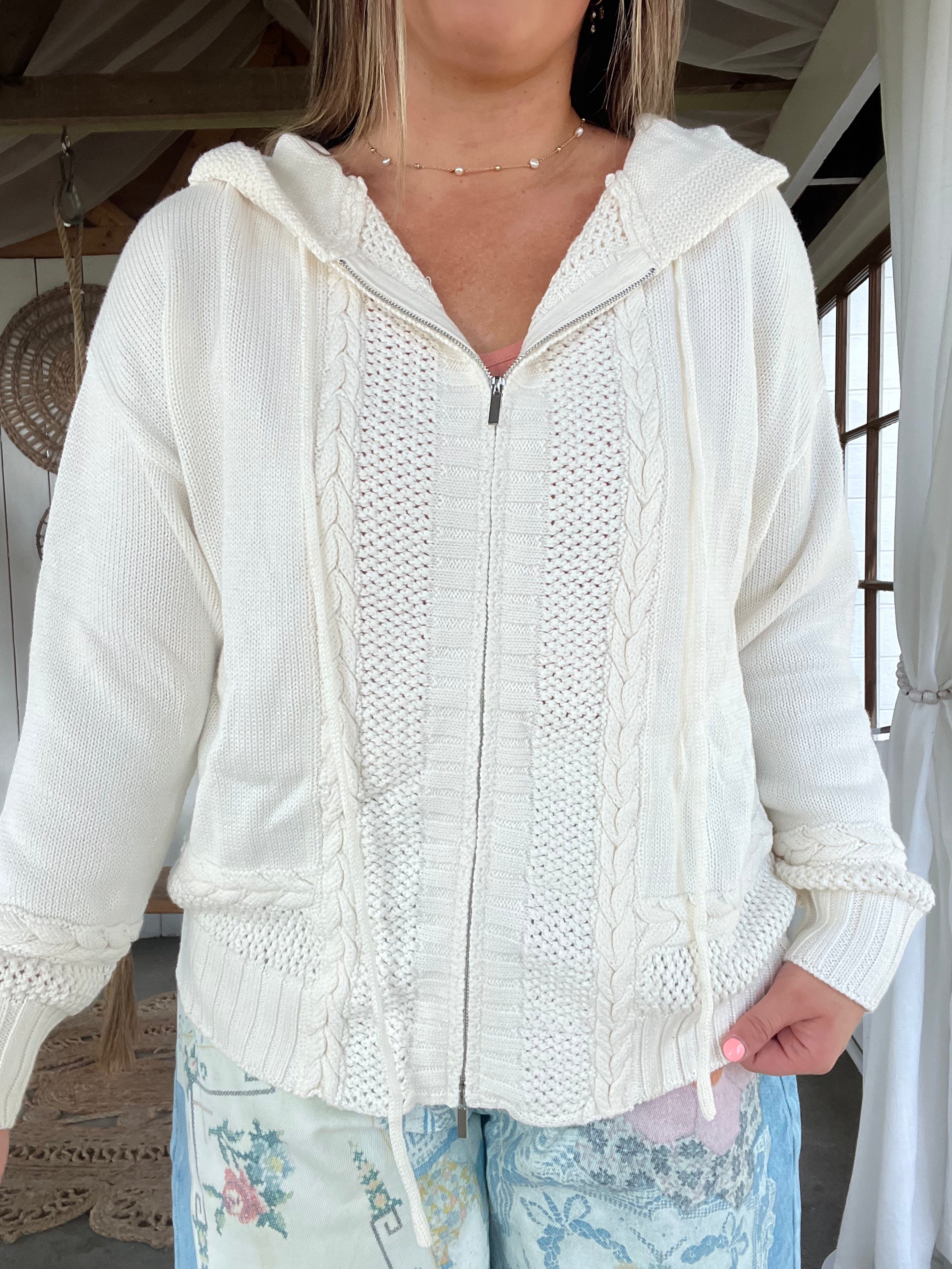 Product Name: Cable Knit Zip-Up Sweater Hoodie Product Category: Hoodies