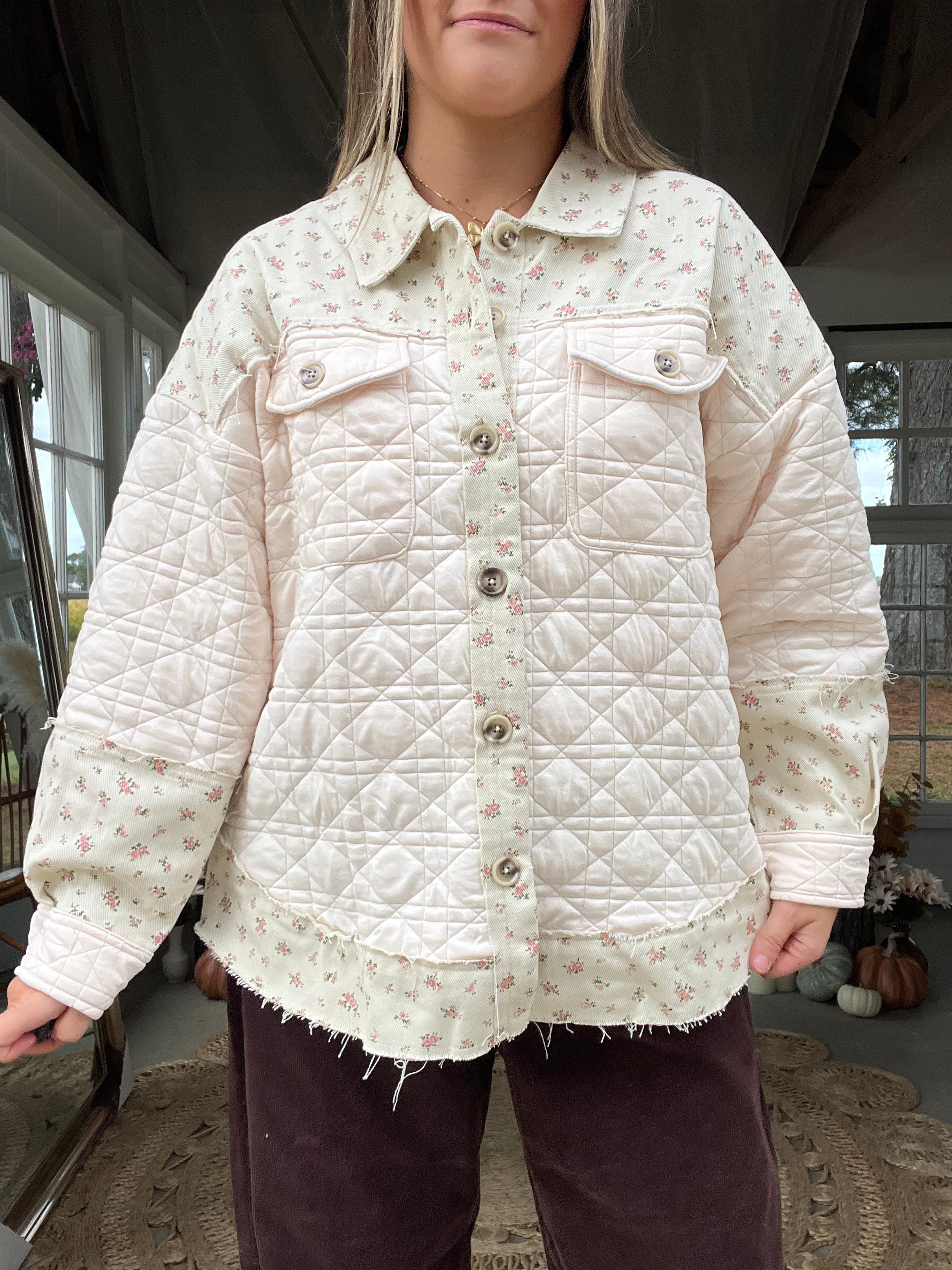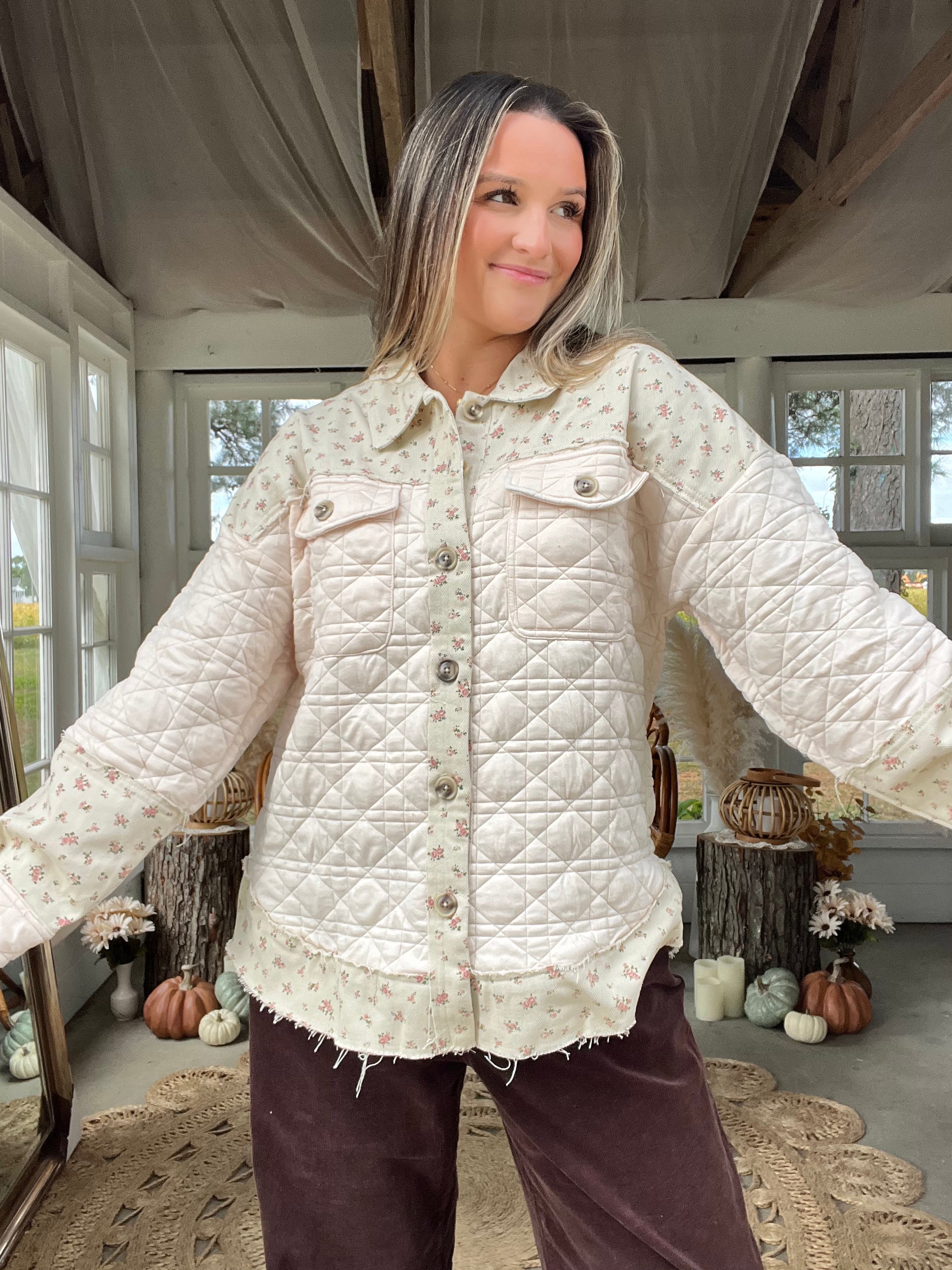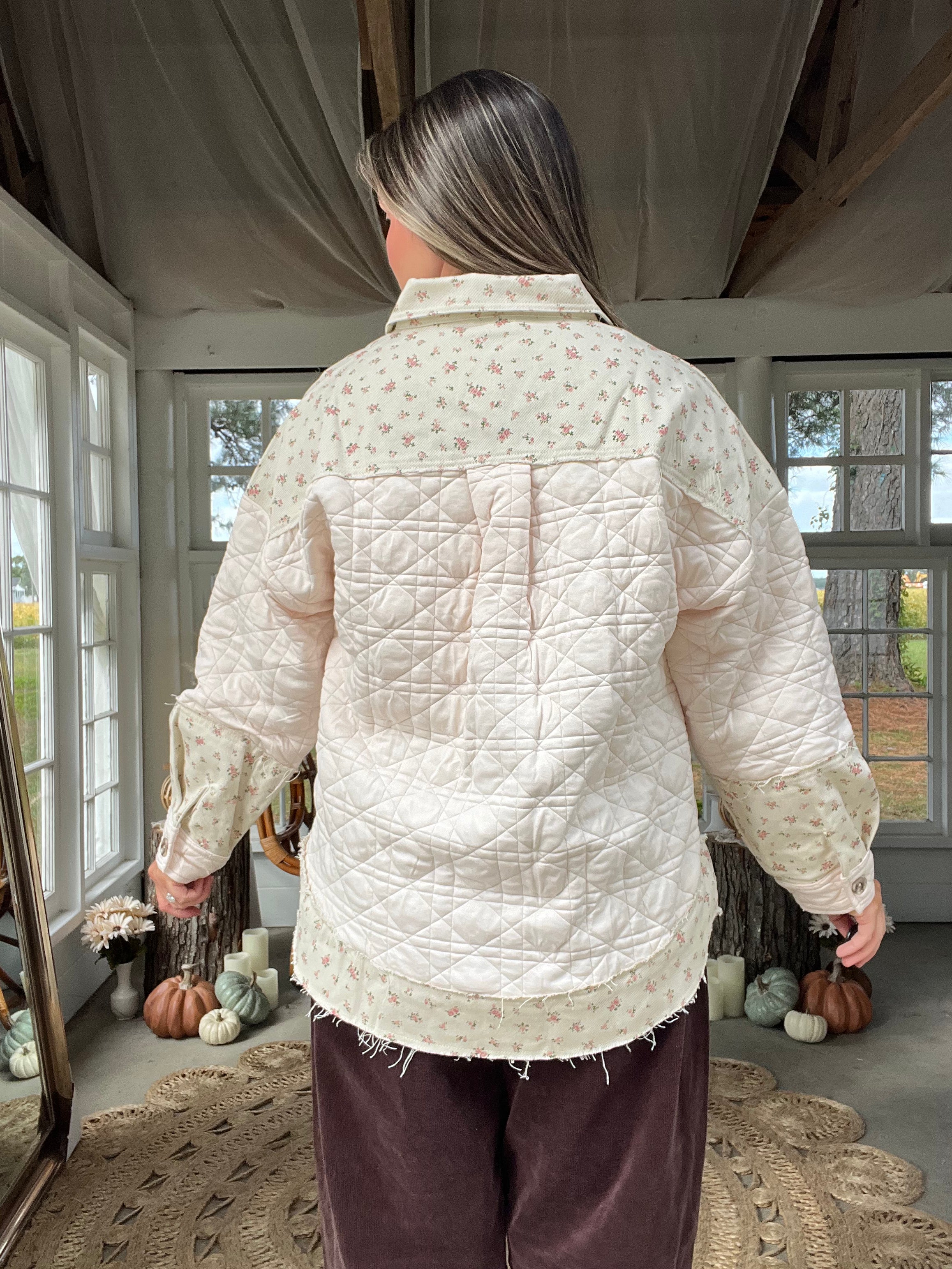 • - Oversized Floral Printed Contrast Cotton Jacket