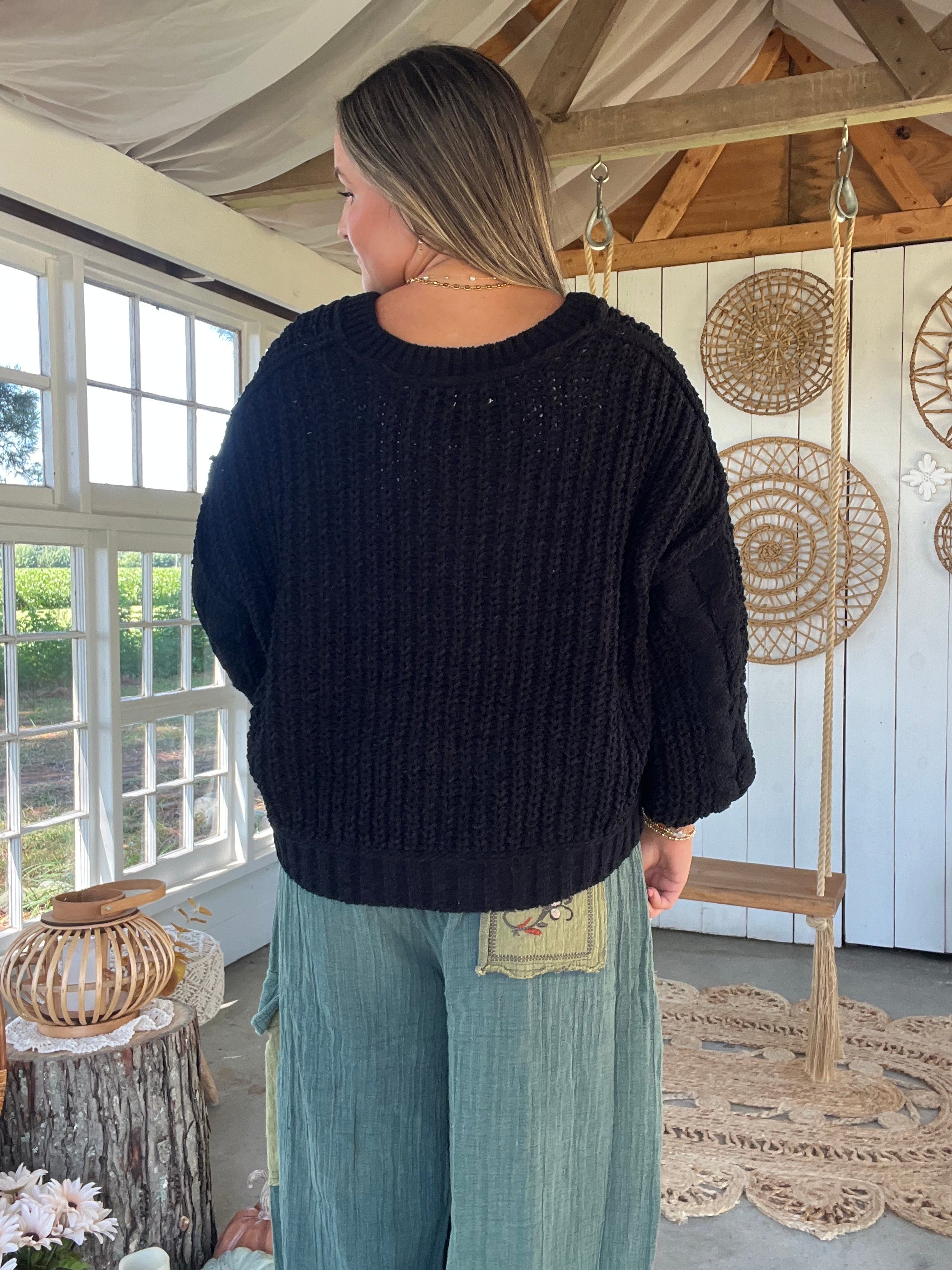 Go To Chunky Knit Sweater - BLACK