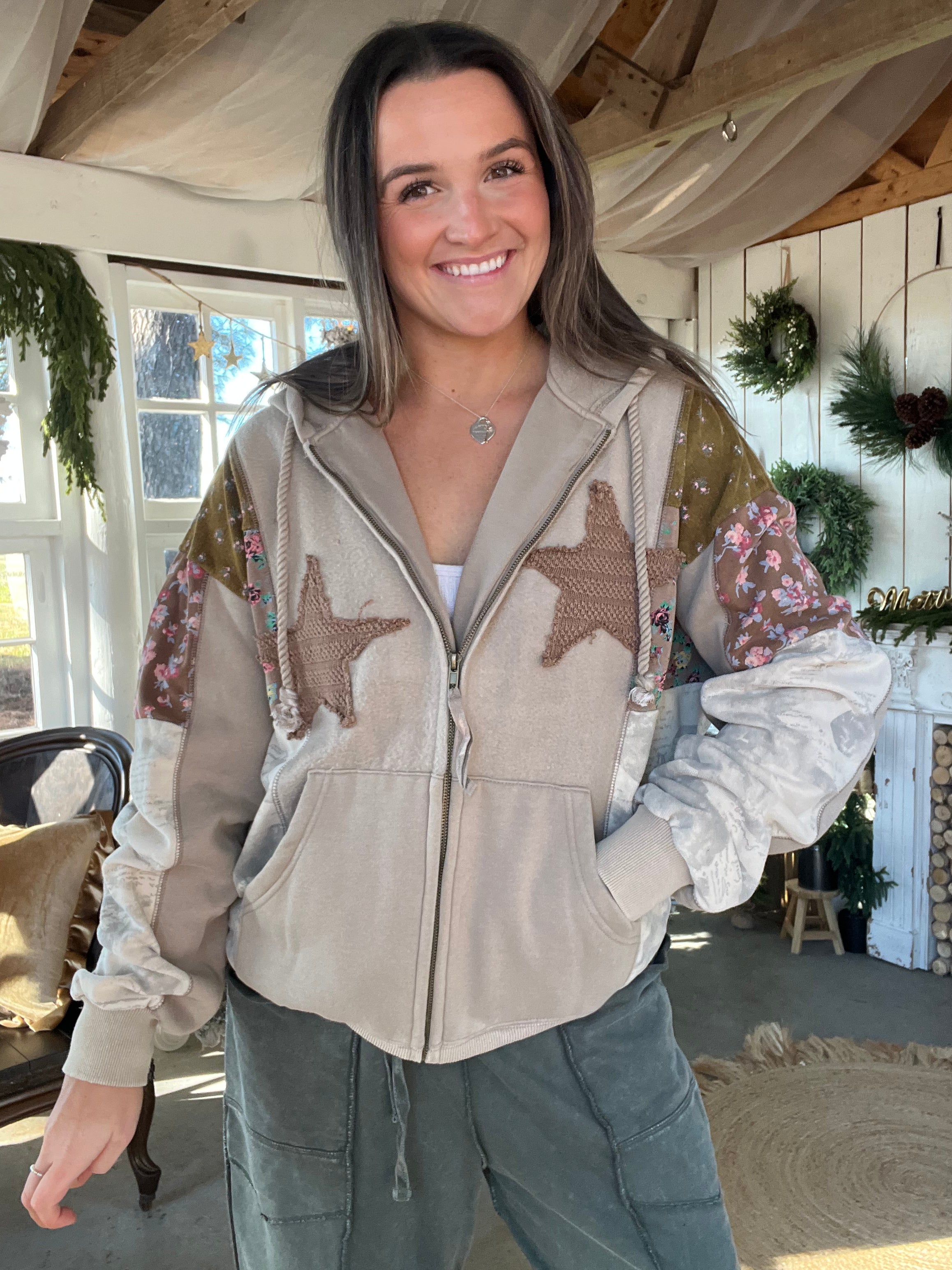 STAR PATCH FRONT WASHED TERRY HOODIE JACKET