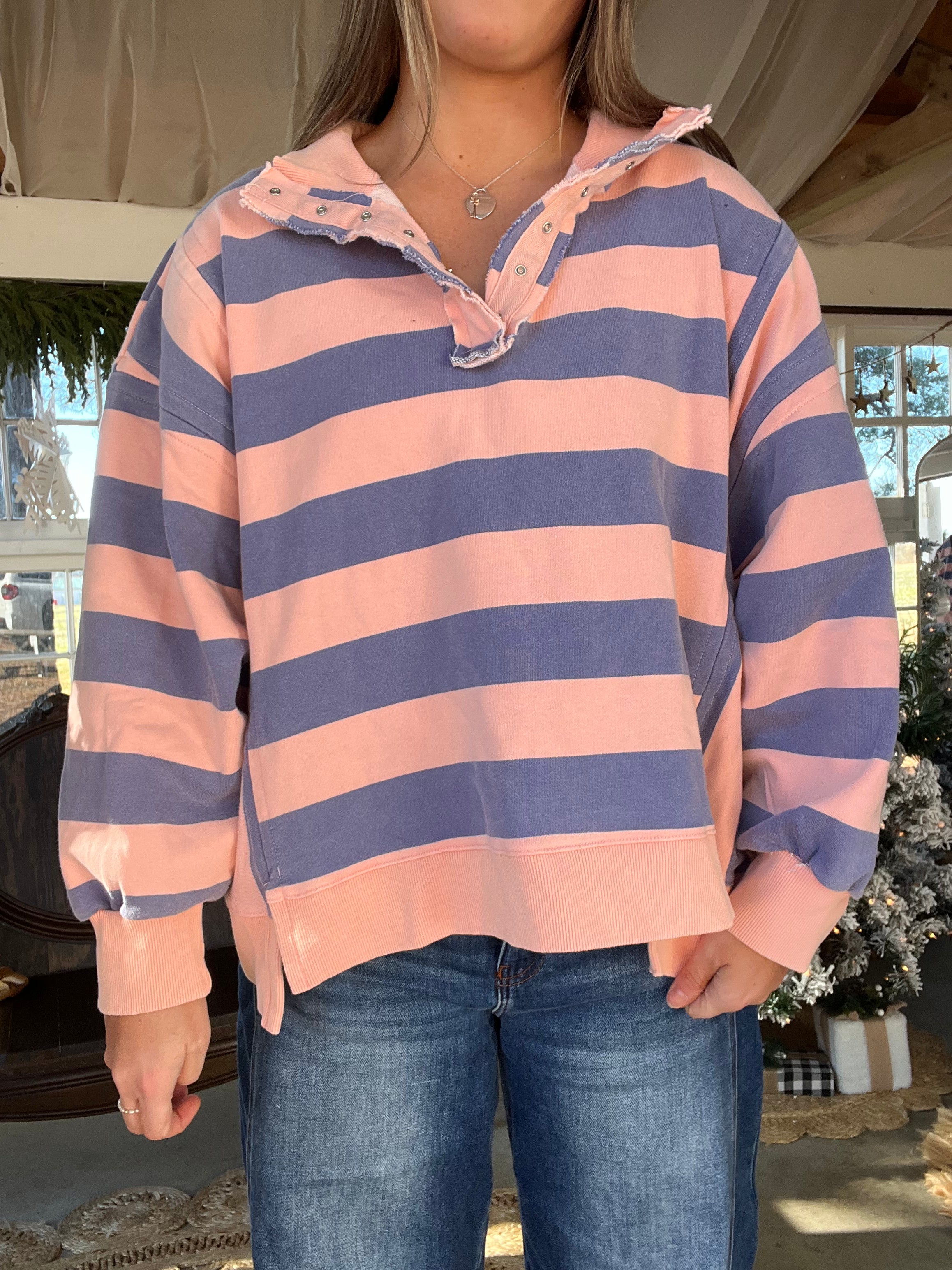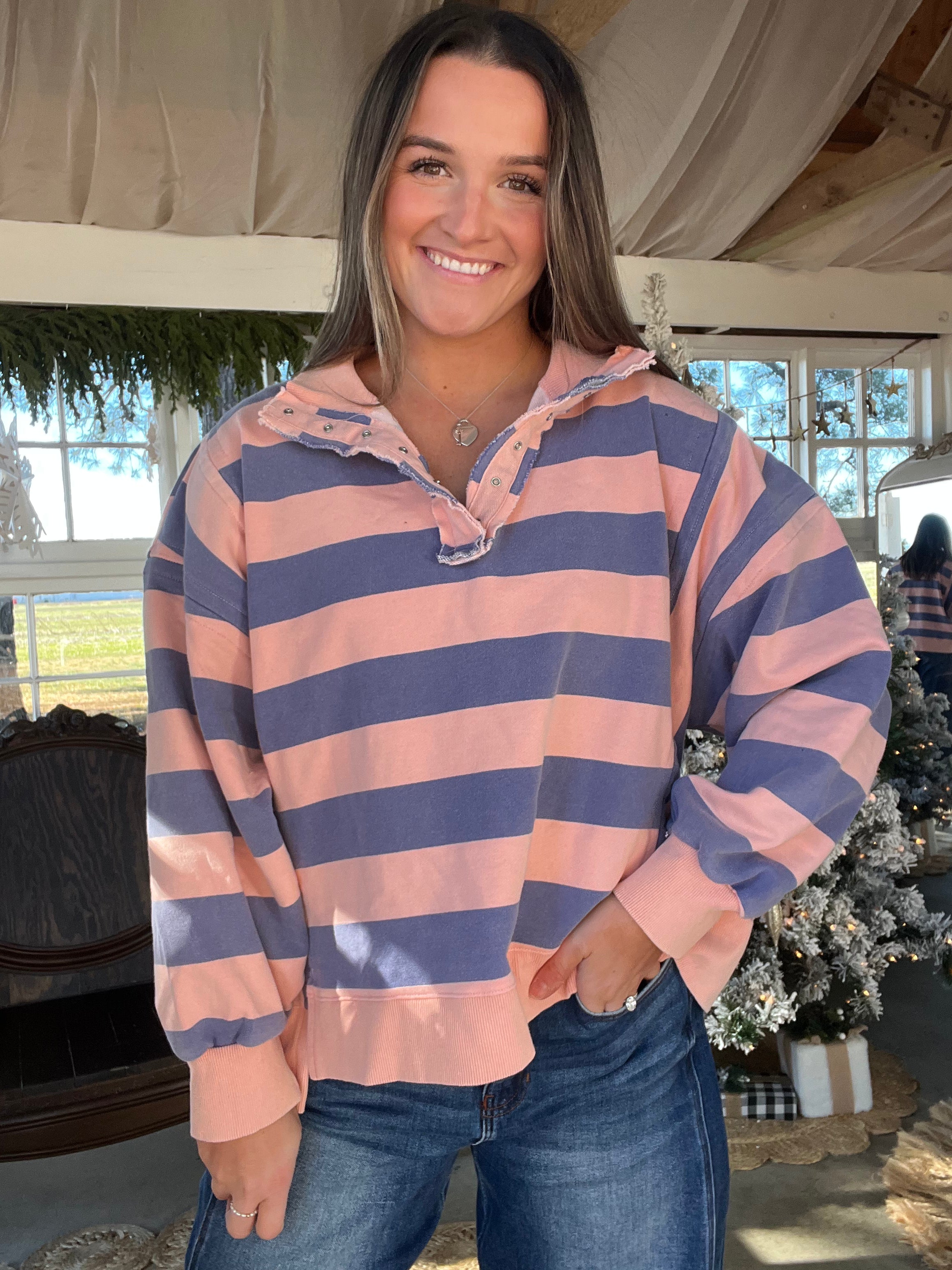 RUGBY STRIPE WASHED TERRY PULLOVER